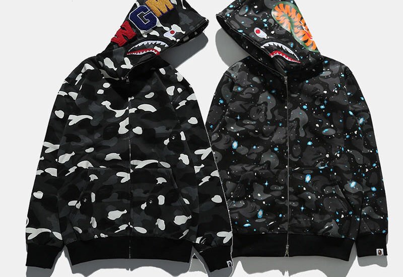 The Bape bluza is easily recognizable for its daring visuals. Whether it’s the legendary “Shark Hoodie,” the colorful “ABC Camo,” or the minimalistic Ape Head logo, each design tells its own story. The shark hoodie, for instance, features a full zip that extends over the hood, revealing a fierce shark face with teeth and eyes — a design that instantly became a pop-culture symbol.The bluza’s graphics often include Bape’s signature camo print, hidden ape motifs, and embroidered patches, combining street style with luxury craftsmanship. Each piece manages to capture attention without saying a word.