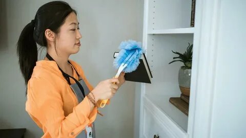 Cleaning, dusting, and wiping to make the floors clean all over the house.