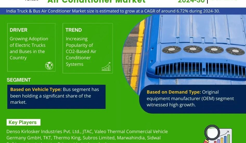 MarkNtel Advisors, a leading market research and consulting firm, has announced the release of its latest study titled India Truck & Bus Air Conditioner Market Research Report: Forecast (2024-2030). This report provides a detailed assessment of the India Truck & Bus Air Conditioner Market, covering its evolving dynamics, emerging trends, key growth drivers, major challenges, and competitive landscape.