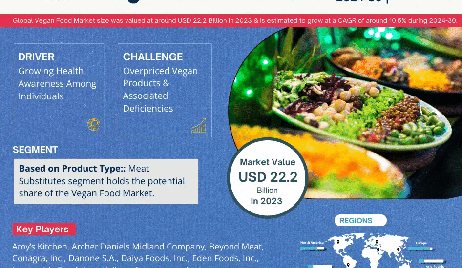 MarkNtel Advisors, a leading market research and consulting firm, has announced the release of its latest study titled Vegan Food Market Research Report: Forecast (2024–2030). This report provides a detailed assessment of the Vegan Food Market, covering its evolving dynamics, emerging trends, key growth drivers, major challenges, and competitive landscape.